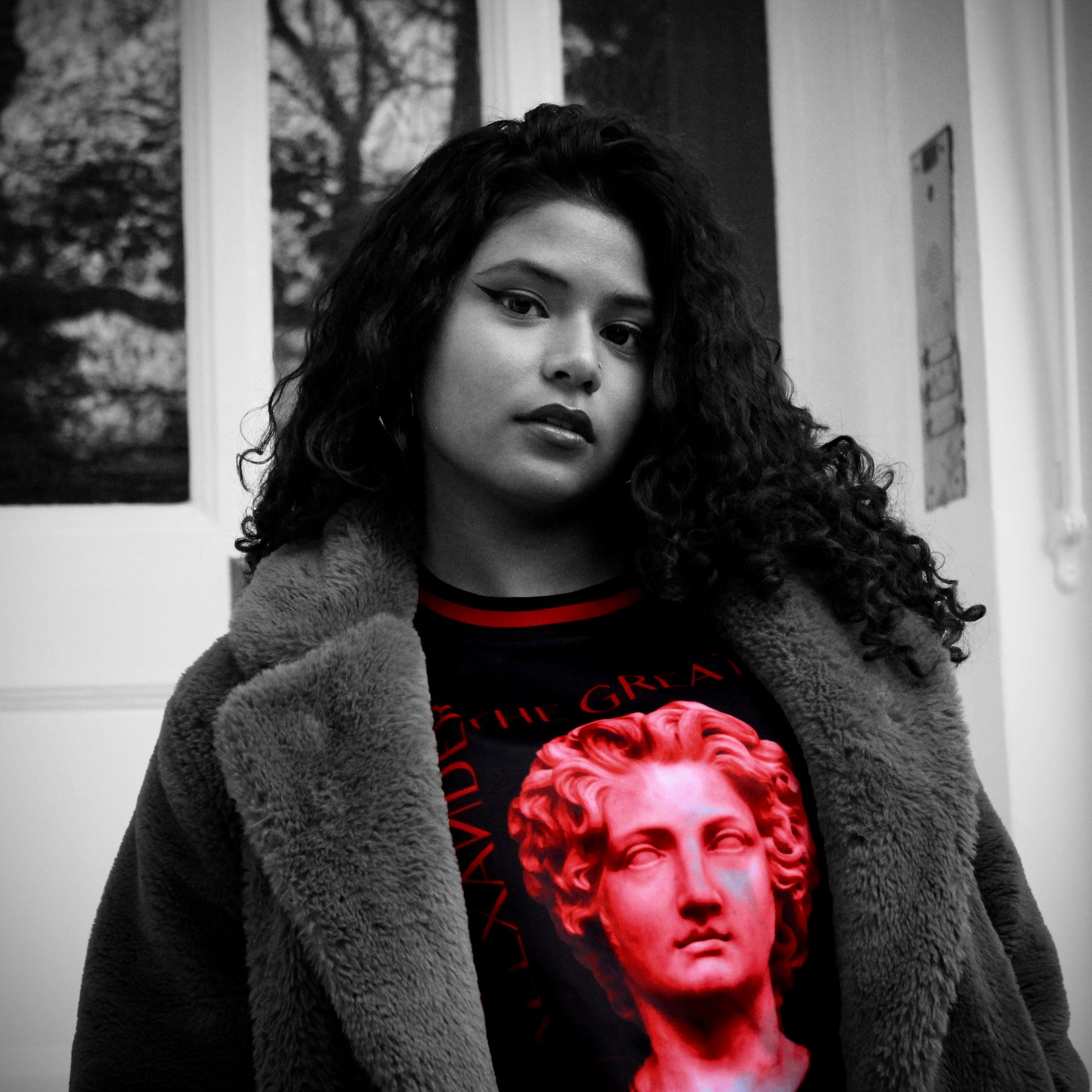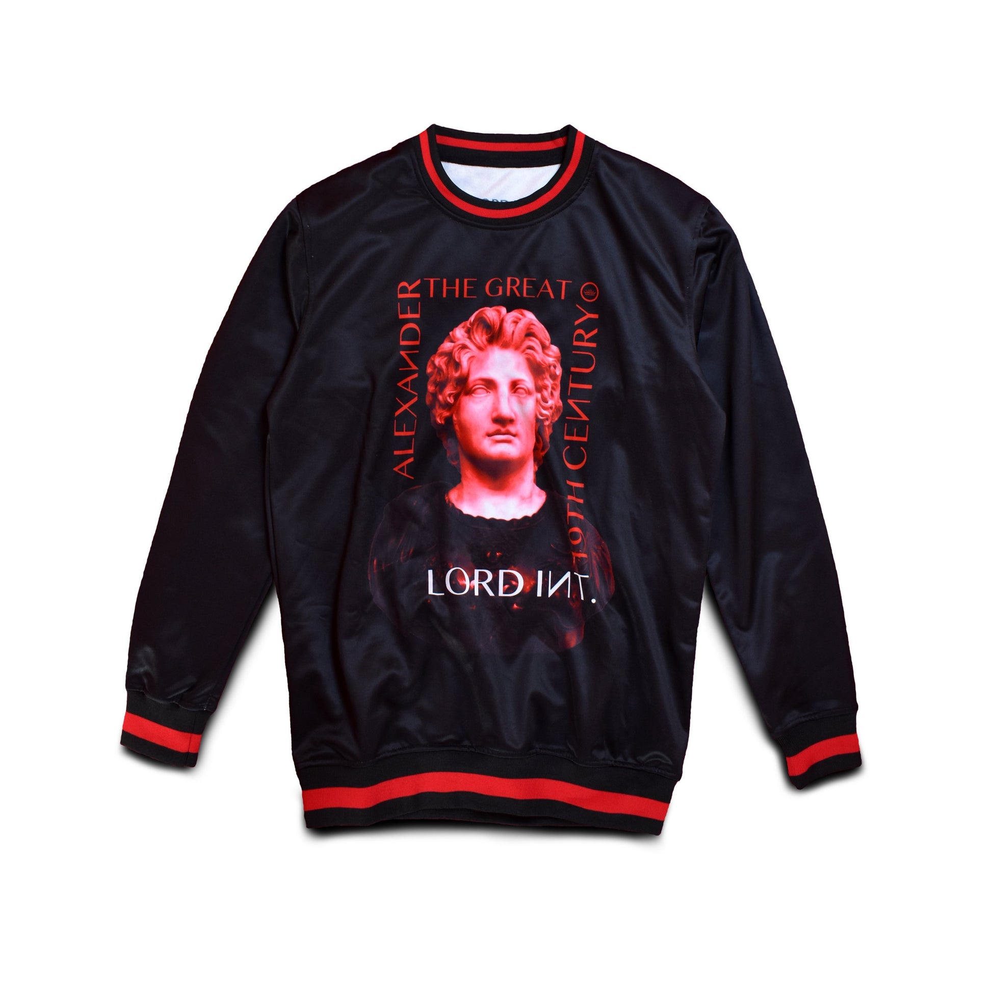 Based on a sculpture by Viktor Brodzki on the Infamous Alexander The Great in vivid crimson red. Complementary Red stripes.